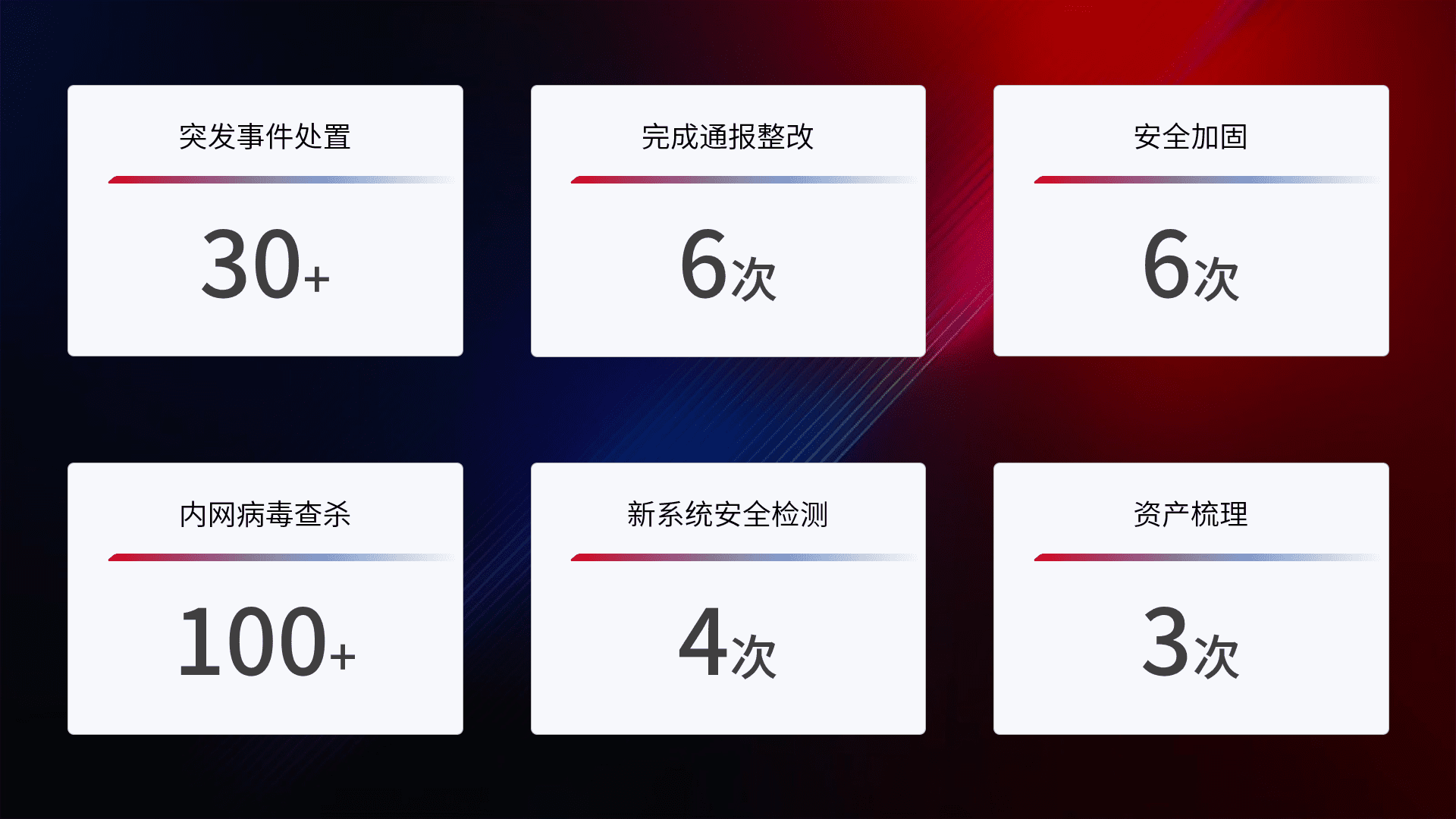 安全水平提升与事件响应:派驻经验丰富的安全工程师,,,,提升医院网络安全防护的整体水平;建立突发网络安全事件的处置流程,,,,提高响应速度和处置能力。。